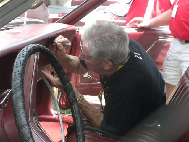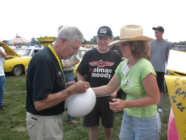Look for photos of Kyle Petty, Rutledge Wood and Leonard Wood doing autographs including one of him signing a helmet for Katrina.