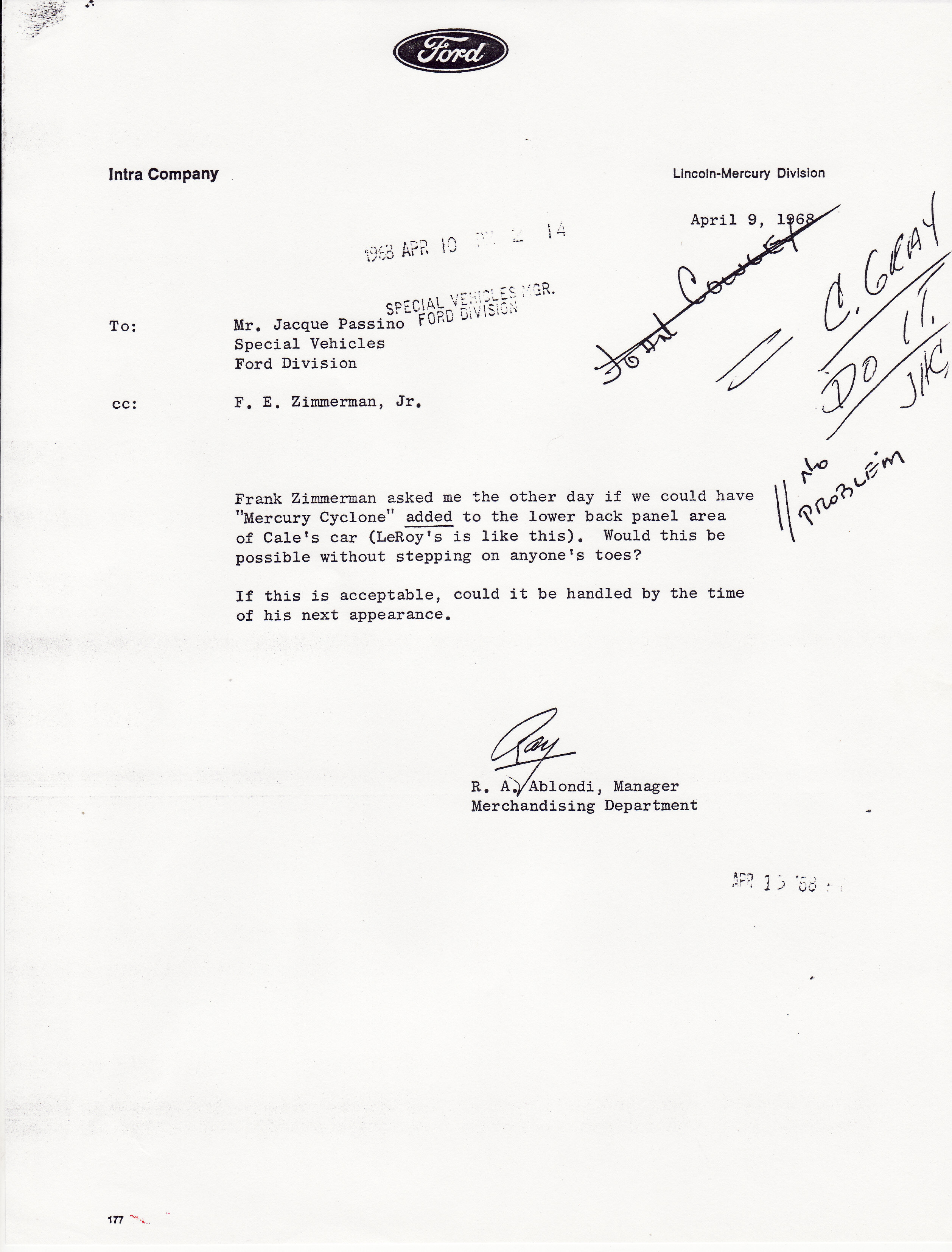This Intra Office lincoln-Murcury Division memo may not be the most historically significant correspodence in the history of Ford but I find it entertaining. Kind of sounds like”Mikey has one, I want one too!”
