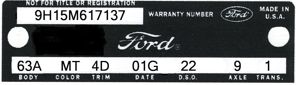 All of the Data Plates found on your cars have a place for the DSO. What does DSO mean? It stands for “Domestic Special Order”. Most Data Plates only list two DSO numbers for regular Blue Oval production cars. As example, DSO 11 stands for Atlanta. Please beware that Ford and Mercury DSO numbers are not exactly the same. They share some numbers but others they do not. What are given here are Mercury DSO numbers!