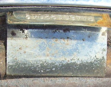 I also requested a detailed photo of the plate from the seller but never received one. After several weeks of additional emails back and fourth I agreed to purchase the car. I certainly didn’t buy it because of this strange tag but it was one of the first things I looked for when I went to pick up the car. The seller had said that the tag had a series of numbers and letters stamped into it which could be read from the inside of the car once the dash pad was removed. The markings were “C9OB”.