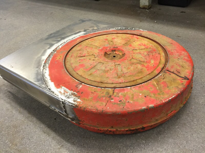 He started with an eBay sourced early 1960’s T-bird rusty FE air cleaner. He says it is the perfect basis for his project.