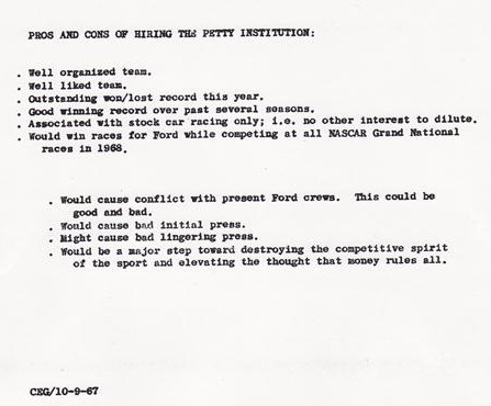 Would you believe Ford was strategizing if Richard Petty would be good for them back in 1967?