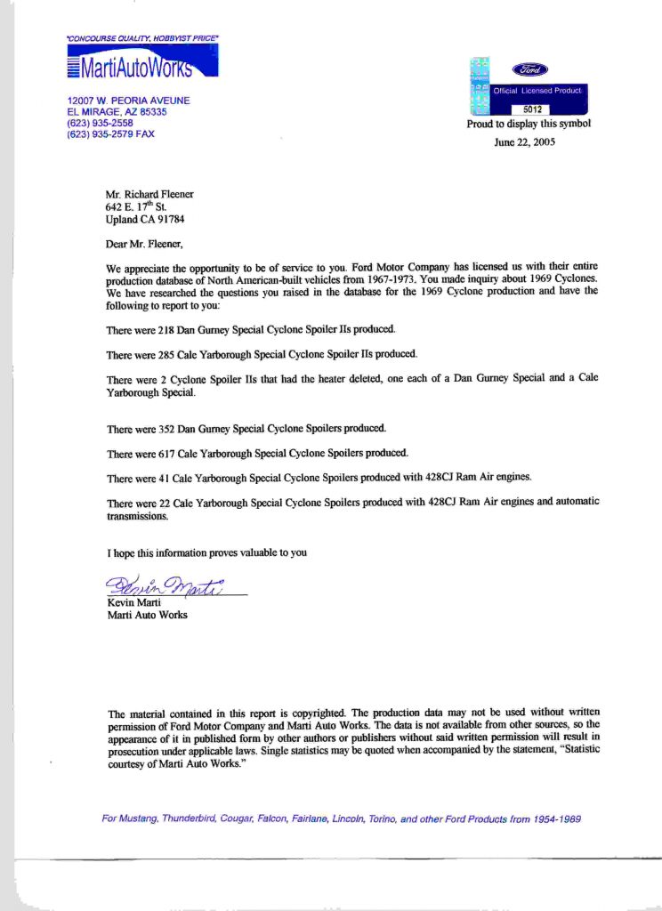 This car is documented to be the only Dan Gurney Spoiler II ever built without a heater. I had a MartiAutoWorks report prepared from Ford production records. In this report it is listed that this car was built as a “Heater Delete”. It has previously been thought that these cars had only one option, AM radio. I subsequently went back to the folks at Marti and had them do some additional research. They reported that there was only one Dan Gurney and one Cale Yarborough Spoiler II built as heater delete cars. Where is the Cale Yarborough car? I do not know its VIN. Does anyone know of any other Spoiler IIs that were built different from the other cars?
